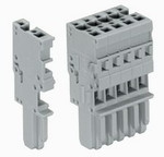与基础接线端子配套的即是1至15极、1线和2线的孔型连接器模块,有直型和弯角型两种。后者与双层接线端子的组合可节省空间,增加结构紧密度。跨接器插孔使得在孔型连接器中也可进行跨接。这种功能特别是在使用双线方式的供电回路中,在孔型连接器拔离的情况下保证电流的顺利通过。