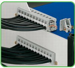 741系列接线端子排可接最大导线截面积2.5mm2,带有辅助按压键和测试点,可以安装在前面板上用于外部接线。带有固定耳的端子排,可以安装在电器面板上。