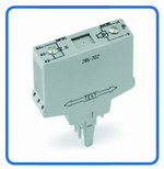 插头式电子模块具有笼式弹簧接线单元,包括继电器模块,光电耦合器模块,温度转换模块,电流监控模块和其他功能模块(如:开关模块、桥式整流器模块、二极管门电流模块、错误指示模块等),该系列模块需插接在基础轨装接线端子上使用。用于插接电子模块的基础接线端子有2线和4线两种,在基础接线端子上有凸槽以防止插错。插头式电子模块与基础端子相结合既节省了空间又减少了额外布线,在更换继电器时无需重新接线。电子模块宽度为10mm、15mm、20mm和25mm。模块的外壳上印刷有该模块的电路系统,以方便用户快速识别其功能。