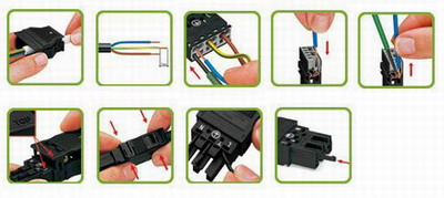 · 插座上的防插错编码针可以方便的扭断或切下。